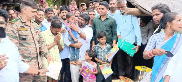 అల్లూరి సీతారామరాజు జిల్లా- పాడేరు మండలం : కించూరు పంచాయతీ తోటలగొంది గ్రామానికి చెందిన గిరియనుడు జిరుగుల లక్ష్మయ్య ముగ్గురు పిల్లలు ఉండడానికి ఇల్లు సరైన తిండి లేక నిరుపేద కుటుంబానికి చెంది వారు పడే కష్టాలు ఇటీవల సోషల్ మీడియాలో చూసి చలించిపోయిన పాడేరు శాసన సభ్యులు మత్స్యరాస విశ్వేశ్వర రాజు ఆర్మీ లెఫ్టినెంట్ కల్నెల్ , 13వ బెటాలియన్ NCC విశాఖపట్నం నీరజ్ కుమార్ కు విషయం తెలిపారు. స్పందించి ఆ కుటుంబానికి మూడు నెలలకు సరిపడ నిత్యావసర సరుకులు పంపిణీ చేసారు.