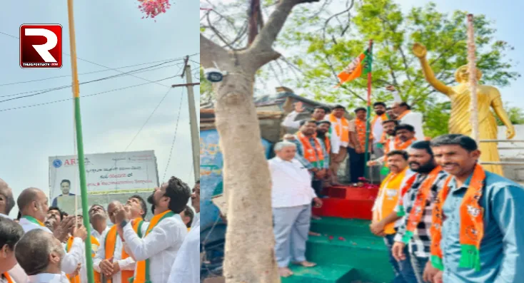 గుండ్లపల్లిలో బీజేపీ జెండాను ఆవిష్కరించిన బండి సంజయ్