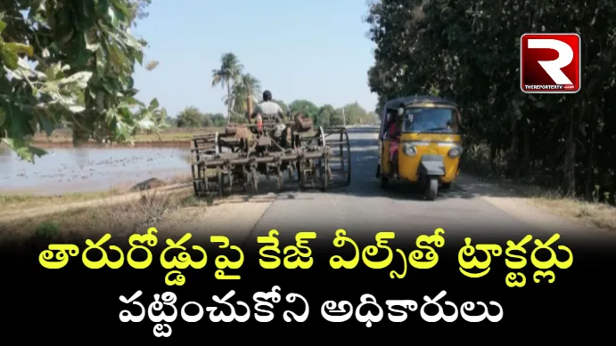 తారురోడ్డుపై కేజ్ వీల్స్తో ట్రాక్టర్లు – పట్టించుకోని అధికారులు