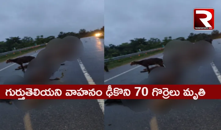 గుర్తుతెలియని వాహనం ఢీకొని 70 గొర్రెలు మృతి