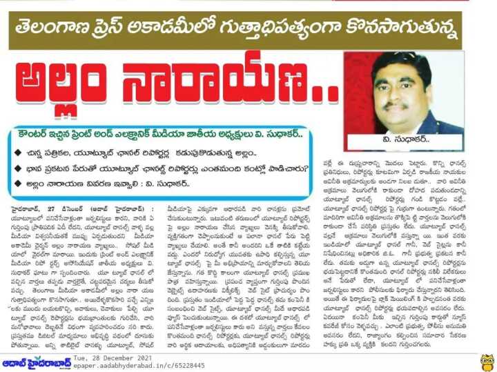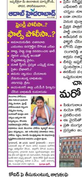 కరోనా సమయంలో పోలీసుల వ్యవహారం పై వి. సుధాకర్ ఘాటుగా స్పందిస్తూ కేంద్ర పరభుత్వానికి వినతులు పంపించడం జరిగిందన్నారు. అంతేకాక తానూ కూడా ప్రజా సమస్యల పై స్పందిస్తూ కొంతమేరకు ఉన్నతధికారులతో మాట్లాడి పలు సమస్యలు పరిష్కరించడం జరిగిందన్నారు. ఉదాహరణకు వరంగల్ జిల్లా కారంలో ఎస్సై శ్రీకాంత్ రెడ్డి సామాన్యుడిని వేముకలు విరిగేటట్టు అంటే పక్కటెముకలు విరిగేటట్టు కొట్టి హింసించాడు. ఆ కేస్ ని కేంద్ర ప్రభుత్వం దృష్టికి తీసుకెళ్లి న్యాయం జరిగేలా చూసారు. ఇలా చెప్పుకుంటూ పొతే అనేక సమస్యలు తన ద్వారా పరిషరించబడ్డాయన్నారు. కొందరు జర్నలిస్టులు అయితే చిన్న పని చేసి దాన్ని ఊరంతా చూపించుకుంటారు. కానీ తనని నమ్మి వచ్చిన వారికి మాత్రం సహాయం చేసినా పబ్లిసిటీ కి దూరంగా ఉంటారు. నిజమైన జర్నలిజం, నిజాయితీ గ పని చేసే జర్నలిస్టులు అంటే ఇలానే ఉంటారేమో … ! పబ్లిసిటీ కోరుకోరు .. పబ్లిసిటీ కి దూరంగా ఉంటారు.
