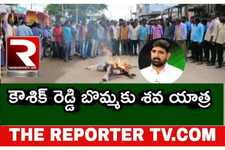 కరీంనగర్ జిల్లా గన్నేరువరం: ఓ విలేఖరిపై అనుచిత వ్యాఖ్యలు చేసిన ఎమ్మెల్సీ పాడి కౌశిక్ రెడ్డి దిష్టిబొమ్మను శనివారం కరీంనగర్ జిల్లా గన్నేరువరం మండల కేంద్రంలో ముదిరాజ్ సంఘం మండల అధ్యక్షుడు బోయిని పోచయ్య ఆధ్వర్యంలో దహనం చేశారు. ఎమ్మెల్సీ చర్యలను తీవ్రంగా ఖండిస్తూ ముదిరాజుల సంఘం సభ్యులు భారీగా ర్యాలీ చేపట్టి శవయాత్రతో నిరసన వ్యక్తం చేశారు. దిష్టిబొమ్మను చెప్పులతో దాడి చేశారు.