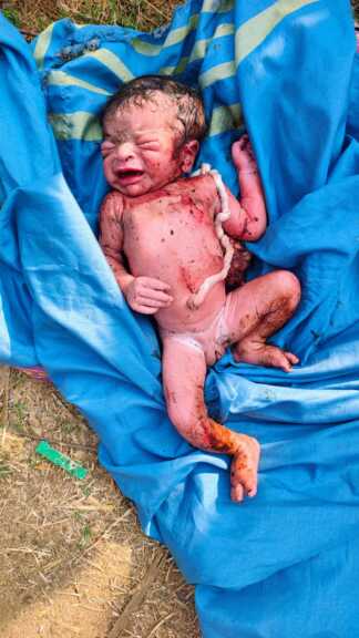 పొలాల్లో పనుల నిమిత్తం వెళ్లిన రైతులు, అక్కడి గడ్డిలో కదలిక గమనించి దగ్గరగా వెళ్లి చూడగా, గుడ్డల్లో చుట్టి ఉన్న శిశువును చూసి షాక్కు గురయ్యారు. వెంటనే వారు పోలీసులకు సమాచారం అందించారు.