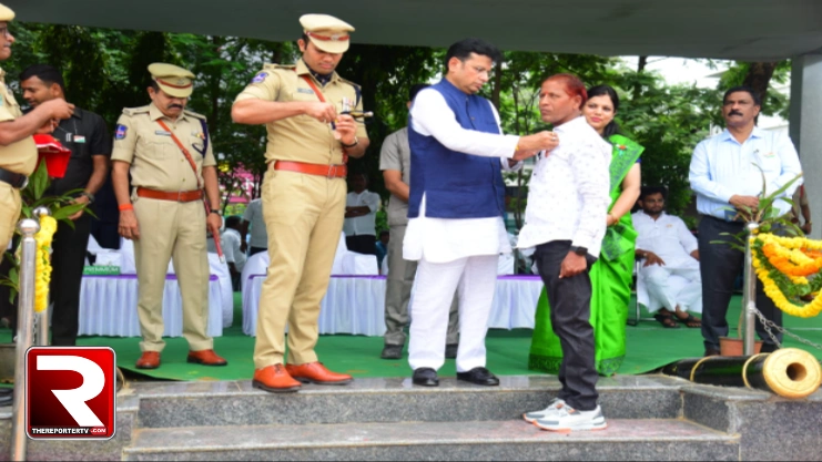 కరీంనగర్ జిల్లా: గతంలో గన్నేరువరం మండల పోలీస్ స్టేషన్లో ఏఎస్ఐ గా విధులు నిర్వహించిన (రిటైర్డ్)  పి.లక్ష్మీనారాయణ కు స్వతంత్ర దినోత్సవ వేడుకల సందర్భంగా శుక్రవారం పోలీస్ కమిషనరేట్ కార్యాలయంలో ఐటీ మంత్రి దుద్దిల్ల శ్రీధర్ బాబు చేతుల మీదుగా సేవ పథకం అందుకున్నారు. ఈకార్యక్రమంలో సిపి గౌస్ అలం, కలెక్టర్ పమేల సత్పతి, పోలీస్ అధికారులు పాల్గొన్నారు.