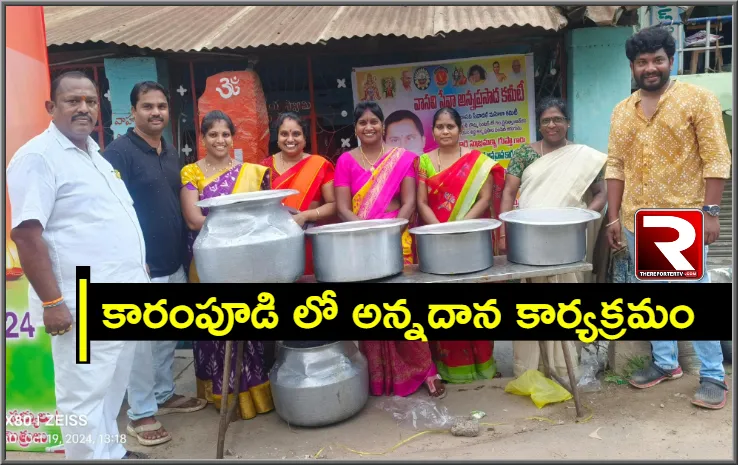 పల్నాడు జిల్లా కారంపూడి పట్టణంలో ప్రసన్నాంజనేయ స్వామి దేవాలయం వద్ద ప్రతి శనివారం నిర్వహించే శ్రీ వాసవీ సేవ అన్న ప్రసాద కమిటీ పర్యవేక్షణలో ఈ రోజు ప్రత్యేకంగా 200 మందికి అన్నదాన కార్యక్రమం నిర్వహించబడింది.