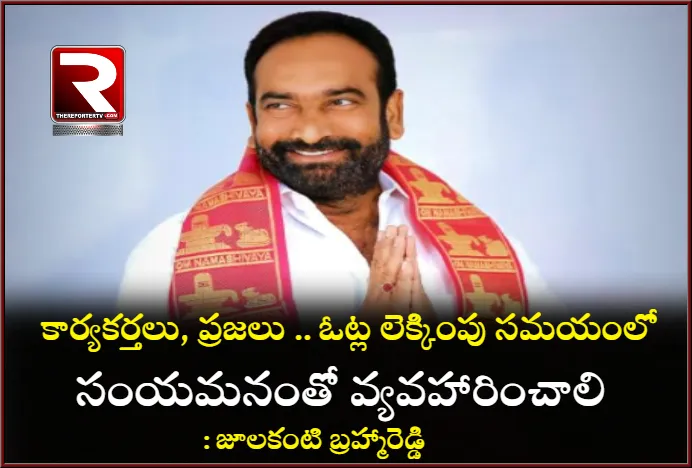 పల్నాడు జిల్లా , మాచర్ల : మాచర్ల ప్రజలు, ఎన్ డి ఏ కార్యకర్తలు, అందరు ఓట్ల లెక్కుంపు ముందు, తరువాత సంయమనంతో వ్యవహారించాలని టిడిపి నాయకుడు జూలకంటి బ్రహ్మారెడ్డి కోరారు. వైసీపీ పార్టీ ఓటమి భయంతో కౌంటింగ్ రోజున కవ్వింపు చర్యలకు పాల్పడే అవకాశం ఉందని ఇటీవల సజ్జల రామకృష్ణ రెడ్డి చేసిన వ్యాఖ్యల ముఖ్య ఉద్దేశమని జులకంటి బ్రహ్మారెడ్డి అభిప్రాయ పడ్డారు. ప్రజలు, కార్యకర్తలు అందరు ఫలితాలు వెలువడే రోజున, తరువాత సంయమనంతో భాద్యతగా వ్యవహరించాలని, వ్యవస్థలన్నిటికి సహకరించాలని విజ్ఞప్తి చేశారు.