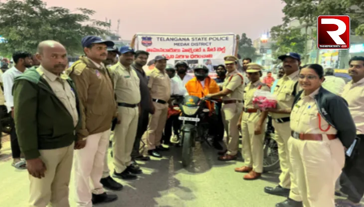 మెదక్ జిల్లా – తూప్రాన్ డివిజన్ : రోడ్డు భద్రత వారోత్సవాల్లో భాగంగా తూప్రాన్ పట్టణంలోని నరసాపూర్ చౌరస్తా వద్ద పోలీసులు ప్రత్యేక అవగాహన కార్యక్రమం నిర్వహించారు. ఈ సందర్భంగా హెల్మెట్ ధరించని వాహనదారులకు గులాబీ పూలు అందజేసి, హెల్మెట్ ప్రాముఖ్యతపై అవగాహన కల్పించారు.